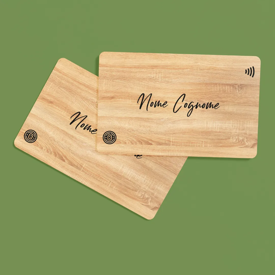 Boocard ti presenta le esclusive tessere NFC in bamboo incise laser: l'innovativo biglietto da visita digitale che unisce l'eleganza del naturale alla praticità del digitale.